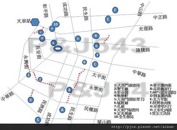 最後還是要說說彰化美食-礦肉飯、肉圓、蛤仔麵、潤餅、碗粿、古早味地骨露等等。這次導覽重點是「從廟宇出發認識老彰化」,因此沒有機會品嚐這些在地美食。不過,貼心的小王子還是在散步中默默的分享他心目中的在地美食給我們,筆記!筆記!也期待小王子承諾的彰化市美食導覽。