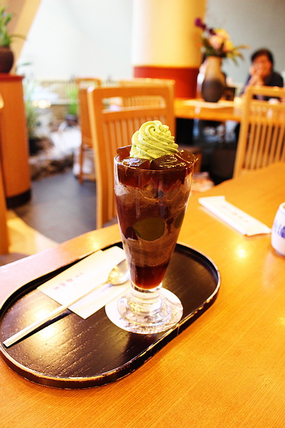 老父親一點也不受這個綠色冰品的誘惑,逕自點了碗紅豆麻糬湯。雖然很跳Tone,不過看起來也好好吃,而且還是季節限定版吔。有時候真懷疑老父親其實懂日文。
