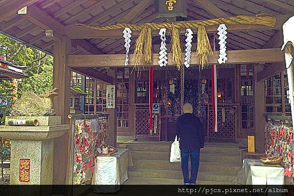 這次我也沒漏掉岔路上的「神寶神社」。也難怪沒什麼人想來這個神社,因為參拜它必須來回走上約30分鐘的泥濘路。我想,除非是神社癡、神社狂,否則不會心甘情願的走這一趟。